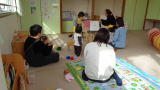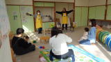 | 「中央図書館読み聞かせボランティアの会」のおはなしのへやが行われました。いつもはプレイルームとして遊べる部屋で、大きな絵本やパネルシアターが行われました。興味があるときには立ち上がったり、お話ししたり、みんなで楽しい時間を過ごしました。 | ||