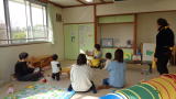 | お外は寒くても、陽の入るお部屋はぽっかぽか。大きな絵本や、手ぶくろのお魚に合わせたリズム遊びなど、みんなで楽しく「おはなしのへや」を楽しみました♬ | ||